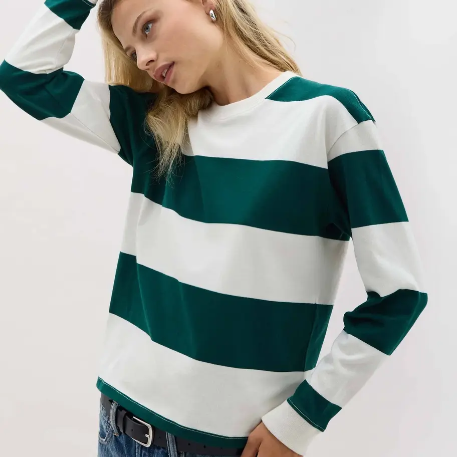 - Long sleeve pullover with yarn dyed rugby stripes