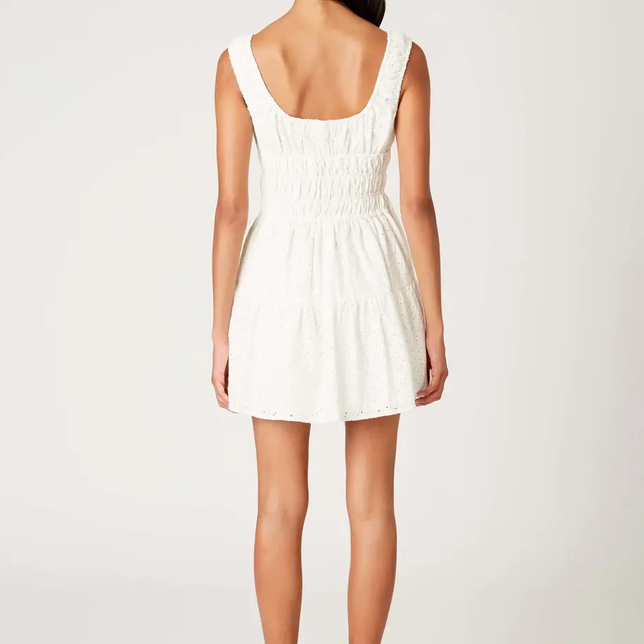 The Salt Dress channels a blend of nostalgic charm and playful ease. This warm-weather muse features a ruched bodice with a flattering scoop neckline and front-tie detail. The skirt flows into a flouncy, tiered silhouette that moves with ease.